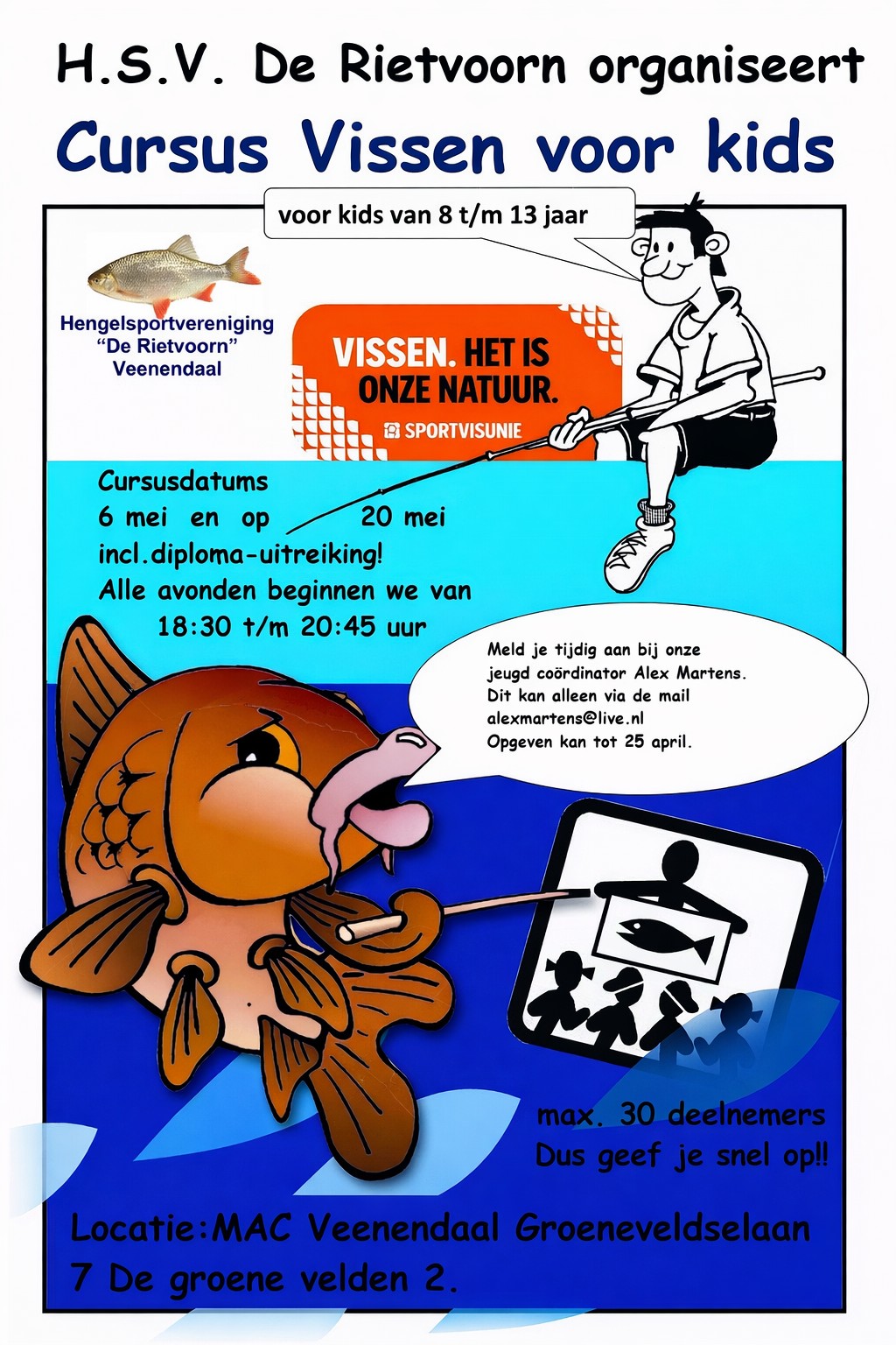 Op 6 en 20 mei leer je de fijne kneepjes van het vissen dus geef je snel op, Vol=Vol
