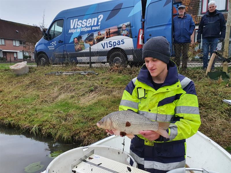 De foto's van het visstandonderzoek door Sportvisserij Nederland op 2 en 3 december 2020 in de vijvers bij de Componistensingel (veel witvis), Kofschip (weinig vis), Vrekenhorst (veel kleine vis), Vondellaan (veel karper en brasem) en Otterlaan (veel vis van alles wat).